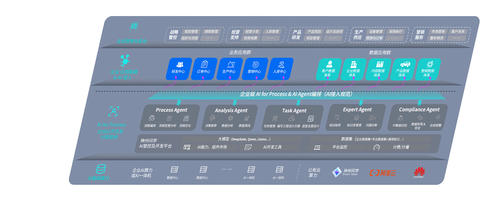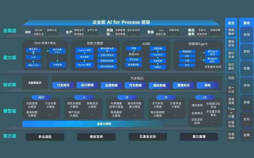 端到端的一站式AI工作空间深度融合了从企业战略规划到日常经营的全流程业务板块,,,定向解决车企内部领域多、、部门多、、、、链条长、、、场景碎片化等难题,,,支持车企快速构建以AI为核心的生产力写作体系,,,,实现任务执行与AI能力的无缝集成与交互