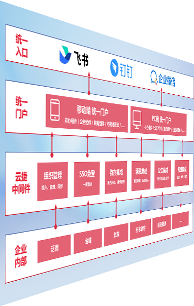 对协作平台提供支持服务,,支持企业应用与协作平台对接,,,包含组织同步、、、消息集成、、、待办集成等。。。支持目前主流的协作平台:钉钉、、、企微和飞书。。